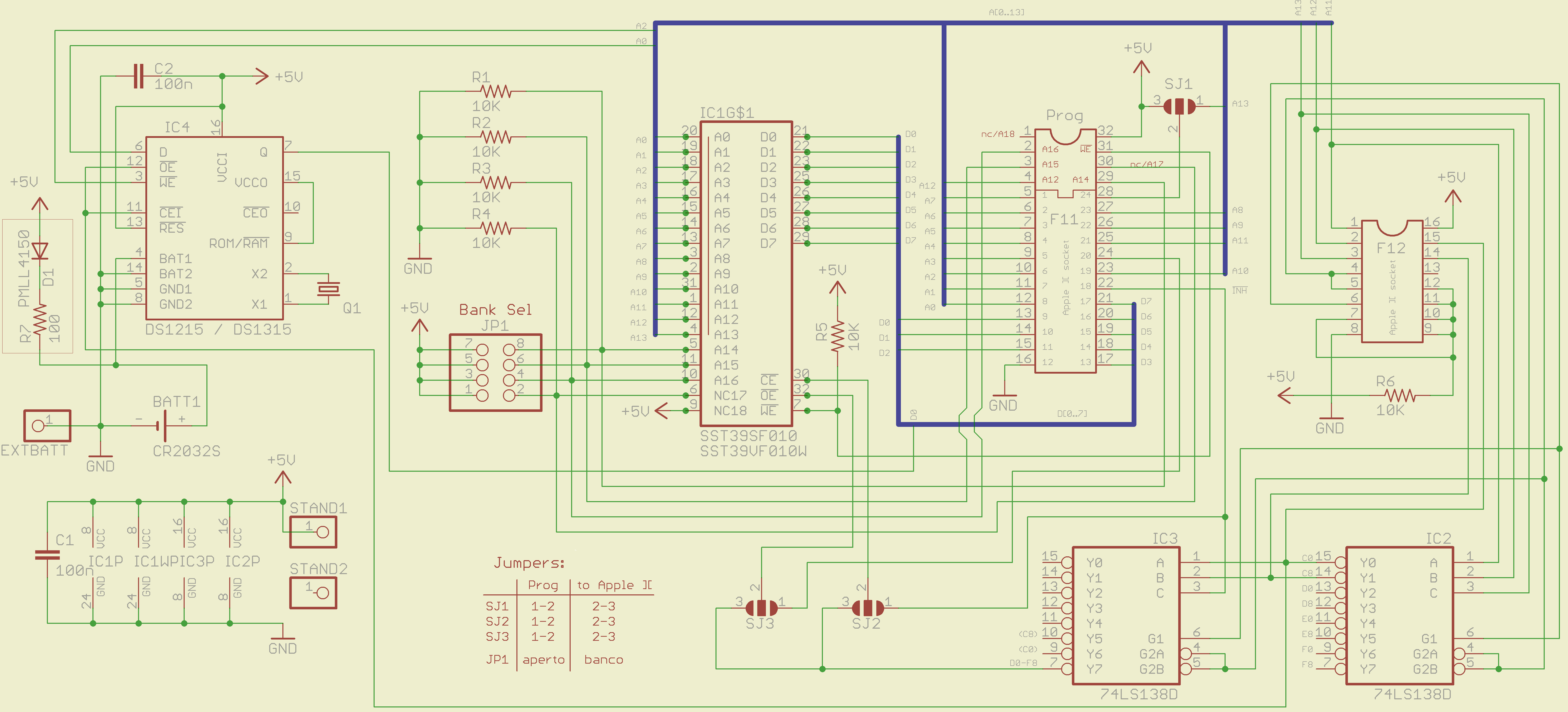 I also modify the schematics with two low profile 1216 battery holders, so all board do not interfere with long Apple 2 expansion cards.